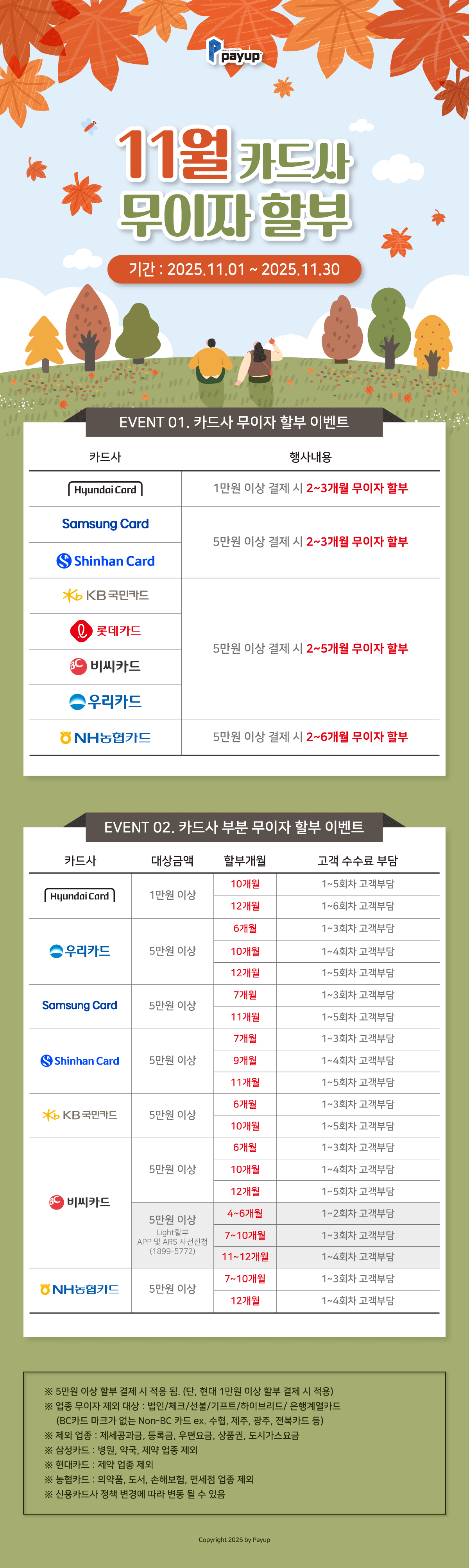 [무이자] 2025년 11월 신용카드 무이자할부 행사 안내