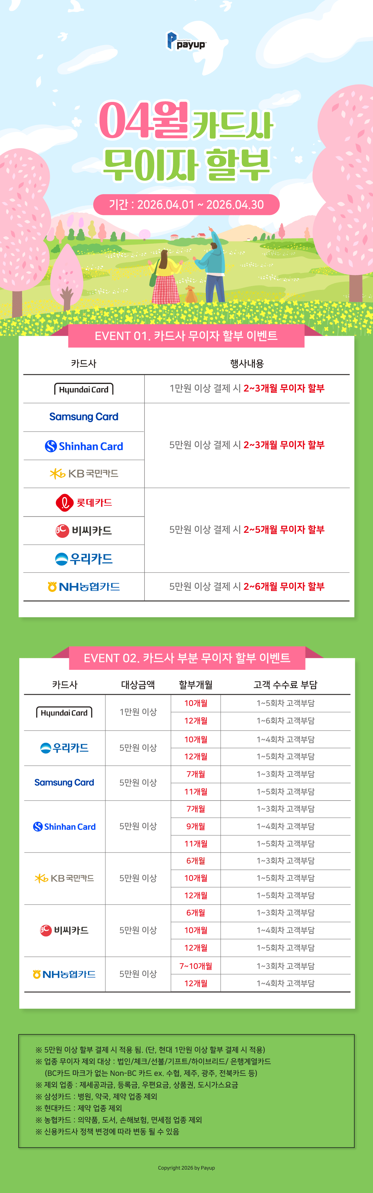 [무이자] 2026년 4월 신용카드 무이자할부 행사 안내